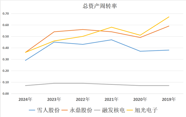 营运能力:旭光电子=永鼎股份>雪人股份>融发核电